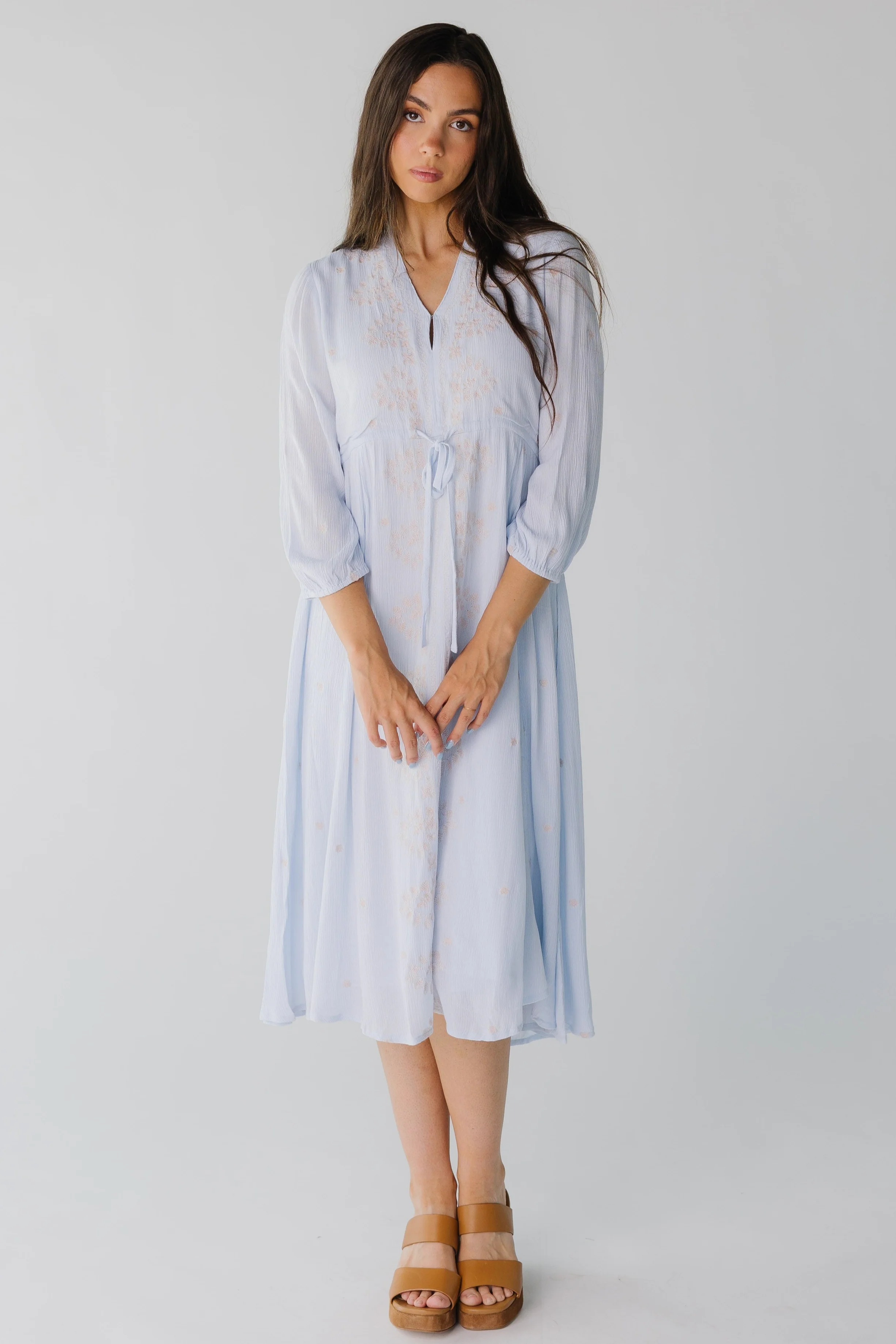 The pastel embroidery is the main feature of this lovely gauzy dress.