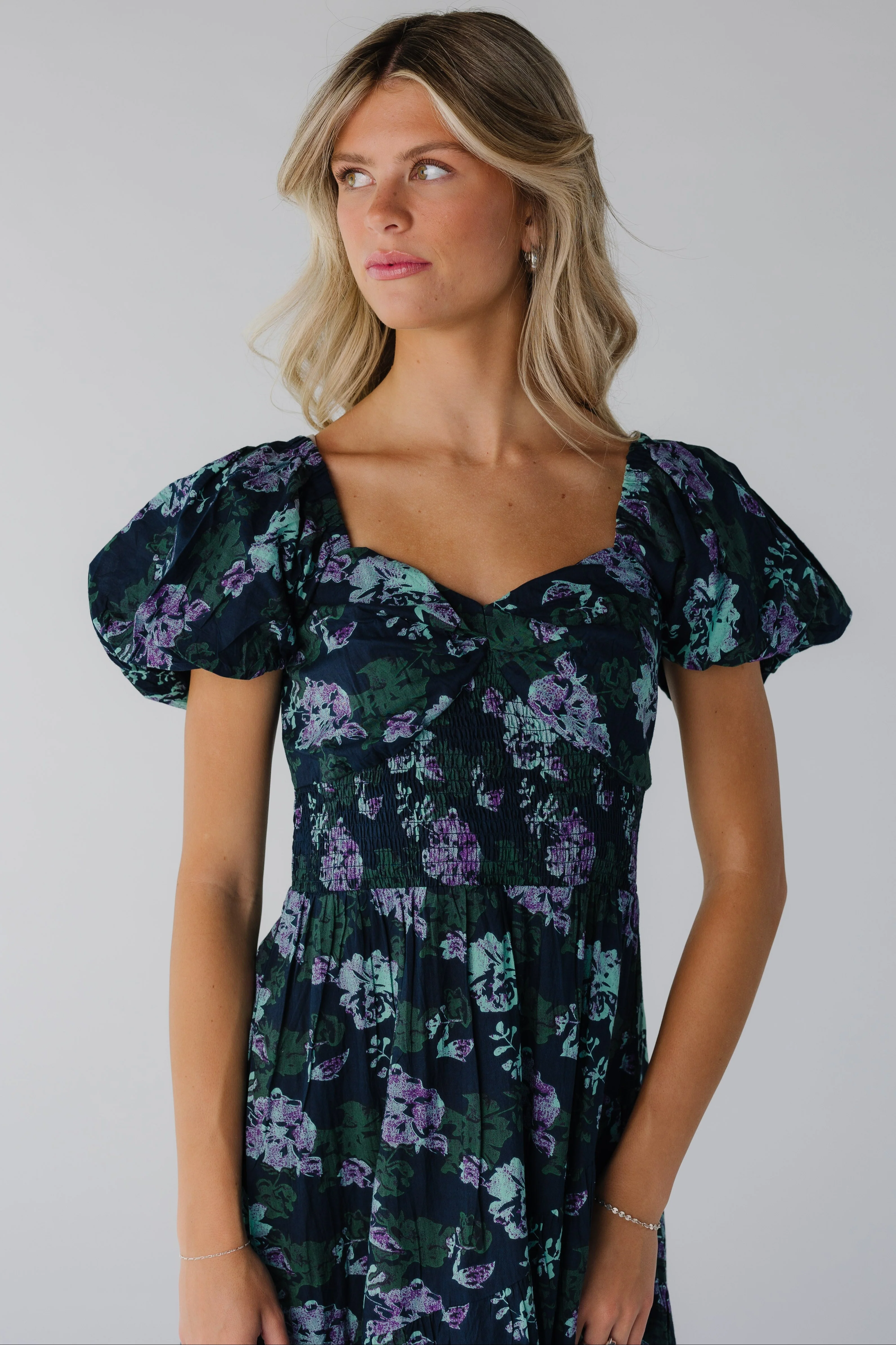 A beautifully flattering dress with an accentuated waist and a romantic floral print
